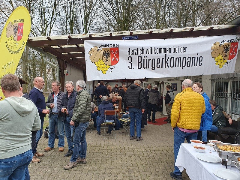 Ziel der Wanderung war – wie auch in den Vorjahren – das Schützenhaus in Barkhausen. Den Teilnehmern der Wanderung war die Freude bei Eintreffen am Schützenhaus regelrecht anzumerken – die Gastfreundschaft der Barkhauser Freunde sucht seinesgleichen. Für die Verpflegung sorte Kompaniemitglied Lars Rohfing mit seinem Team von der Kotelett-Schmiede.