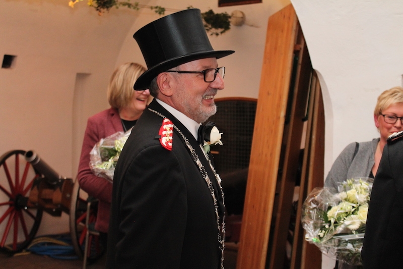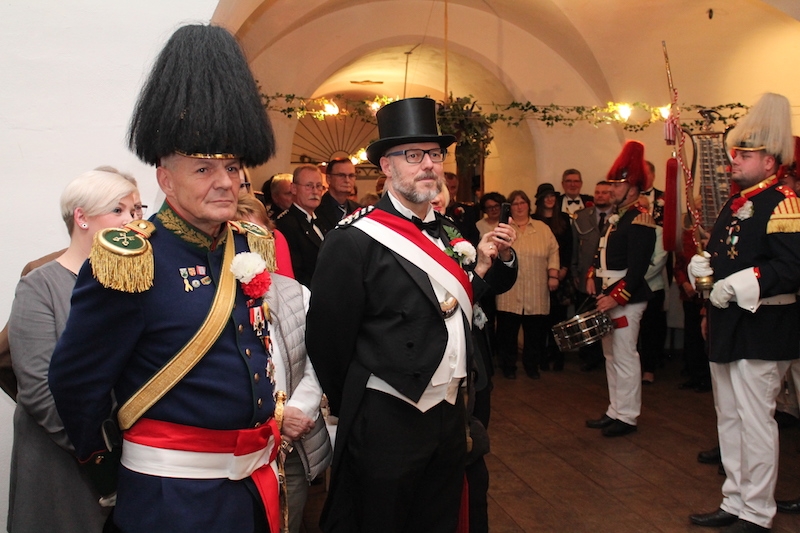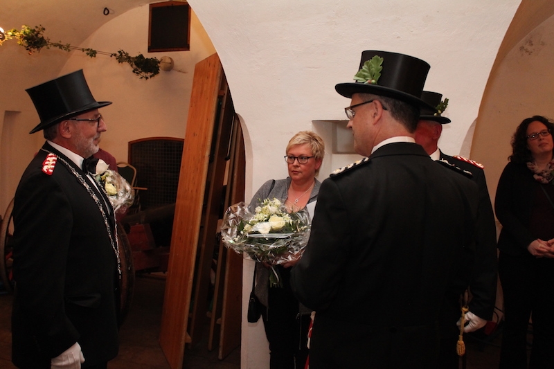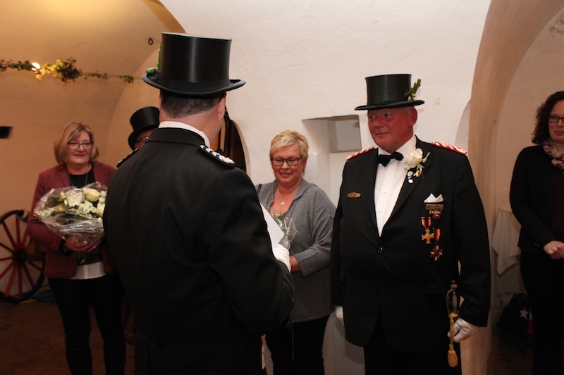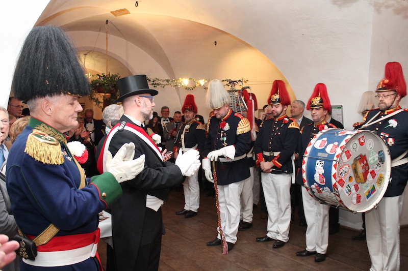 Heinz Joachim Pecher dankte Schelp für seine geleistete Arbeit und wünschte dem neuen Spieß für die bevorstehenden Aufgaben viel Kraft und Glück. In seiner Ansprache stellte der Stadtmajor sehr anschaulich die historische Bedeutung des Spießes in einer Kompanie dar.
